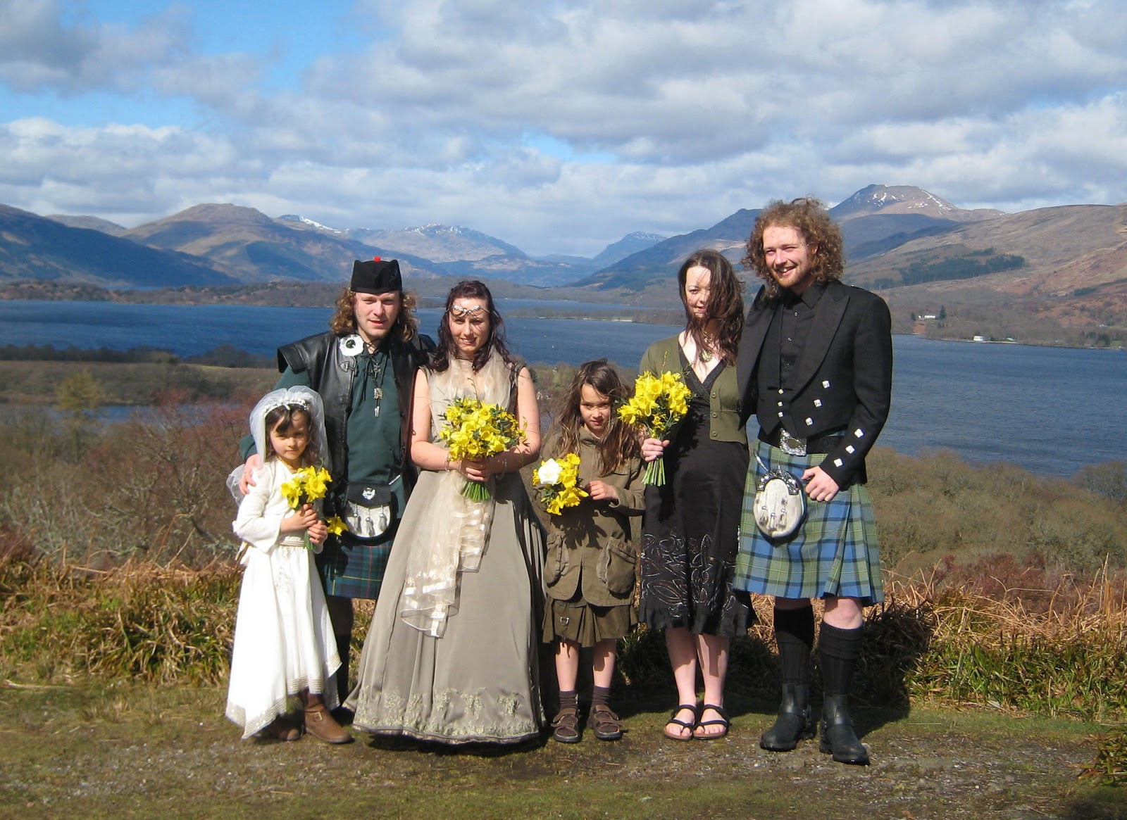 (a not so sunny day but a lovely medieval themed wedding on the shores of the loch outside Kinlochard village hall)